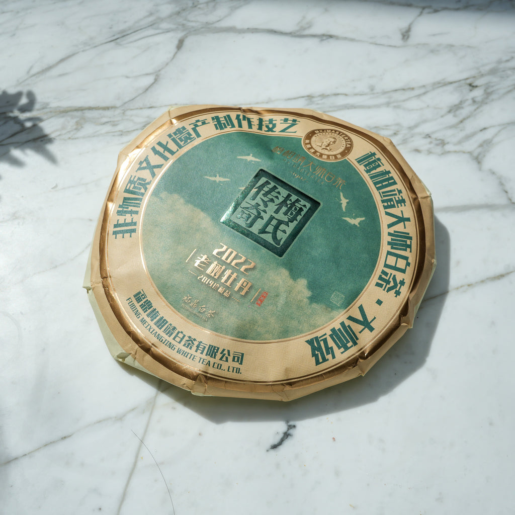 A special edition Baimudan cake from Master Mei Xiangjing using 2019 Maocha as base.